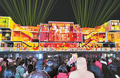 2月12日,上海市,机器人跳舞拜年、虚拟数字神龙送新春祝福——宝山区智慧湾科创园举办高科技裸眼3D光影秀,让游客体会新技术带来的梦幻年味。陈玉宇摄(人民图片)2月2日,在安徽省亳州市220千伏谯城变电站,一台5G智…